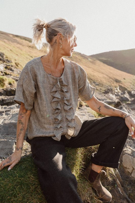 We create unique designs in-house and make everything in the UK. Our garments are crafted in small quantities, with simple, considered cuts that celebrate the skill of local seamstresses and knitters. Every piece is made with care — a reflection of our commitment to sustainable craftsmanship and consciously treating the planet kindly.