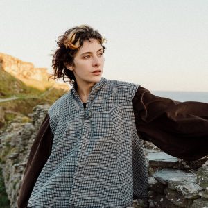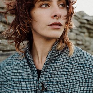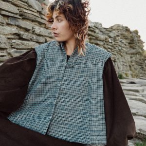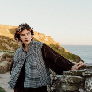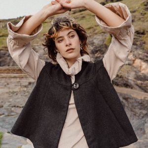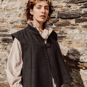 Made from beautiful British pure wool, it offers structure, warmth, and functional form in perfect harmony. Crafted from cosy felted tweed, it features a swing-style cut with a small mandarin collar, generous armholes, and a yoke back that falls into a gentle trapeze shape.