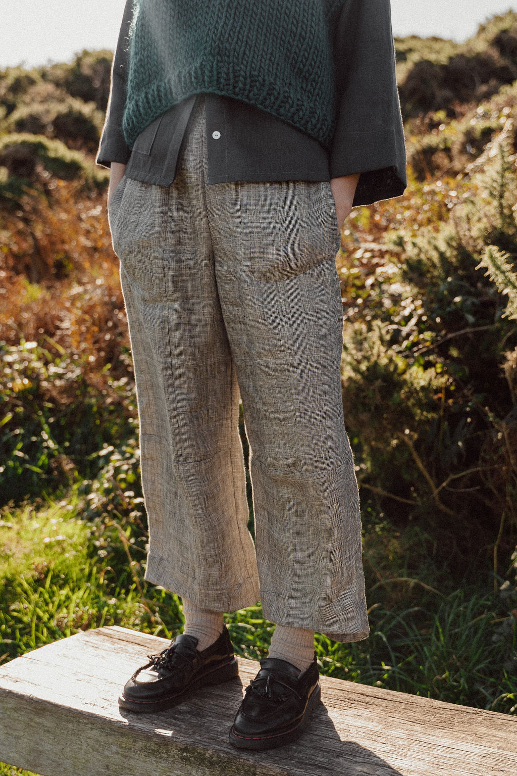 Our slouchy Rock Pool Trousers are a relaxed evolution of the classic Prairie style, blending ease and versatility with a distinctive silhouette. Crafted from The Make Shed’s own incredibly soft, tumbled linen, they offer effortless comfort and natural movement.