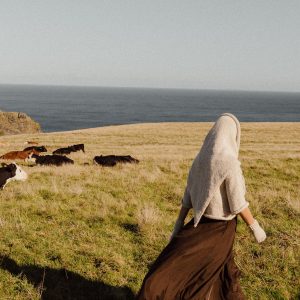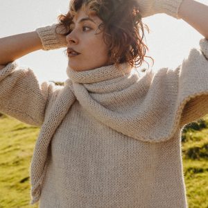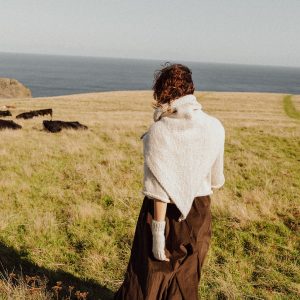 A triangle-shaped shawl or headscarf, it’s crafted by hand from a gently twisted yarn that adds movement and natural drape, making it super wearable all year round.